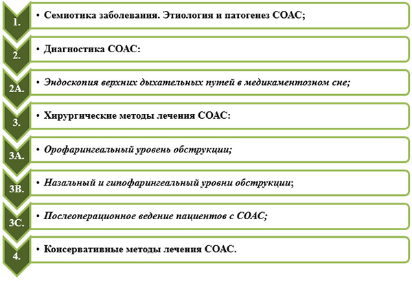 • профессиональное совершенствование врачей-оториноларингологов по вопросам диагностики и лечения (консервативного и хирургического) пациентов с СОАС;